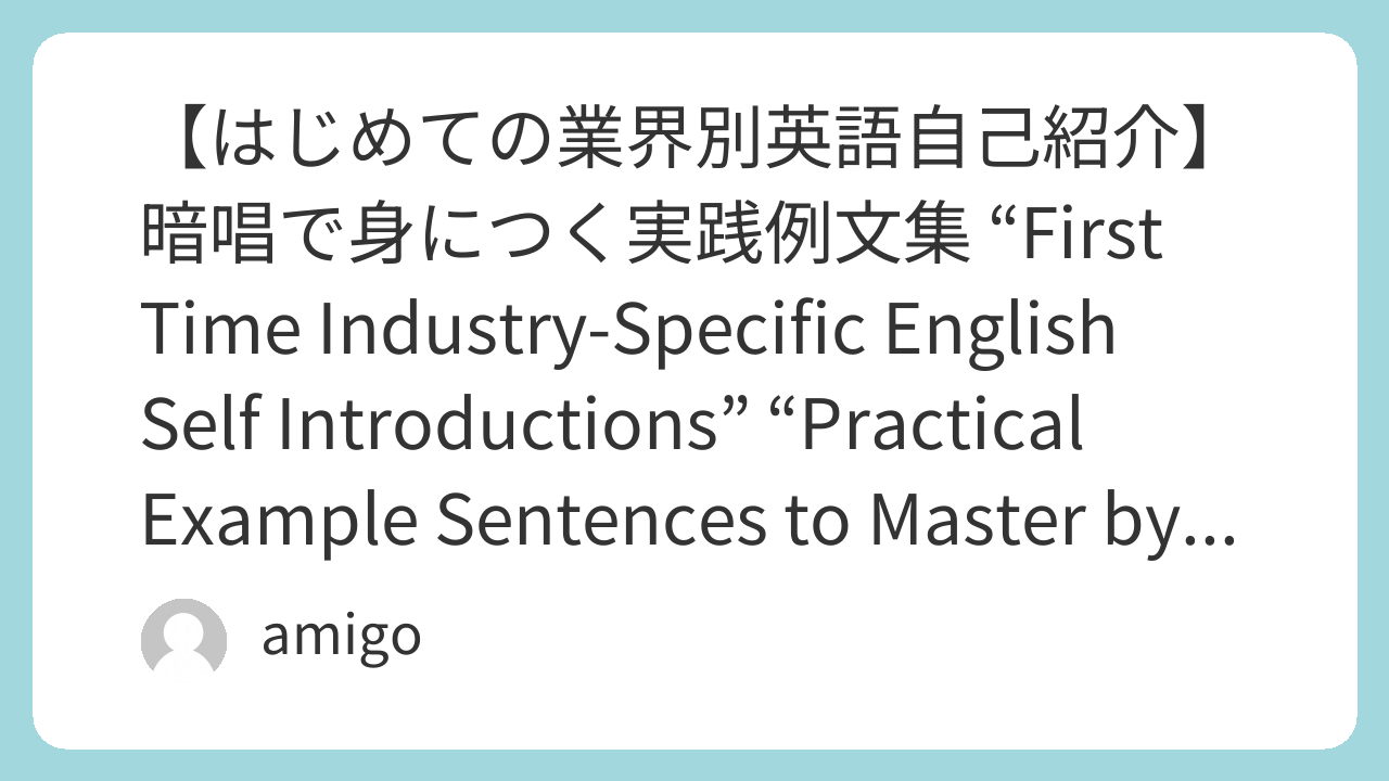 【はじめての業界別英語自己紹介】暗唱で身につく実践例文集 “First Time Industry-Specific English Self Introductions” “Practical Example Sentences to Master by Memorization”