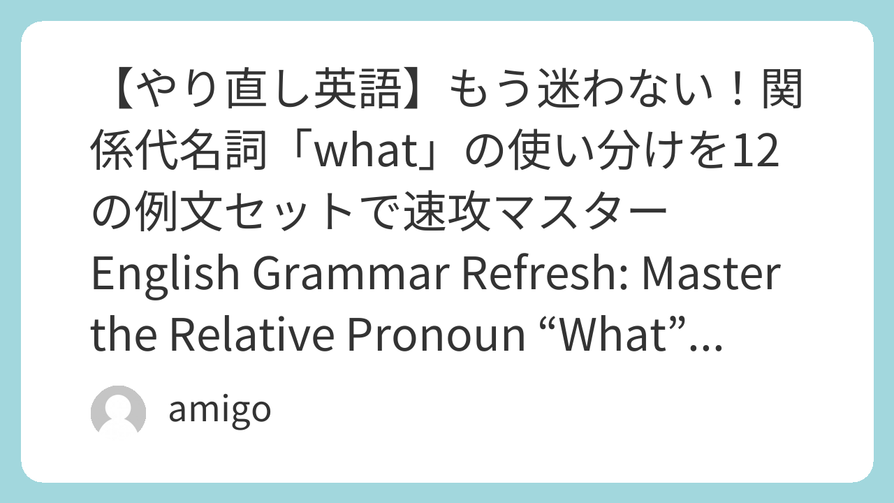 関係代名詞 what は、”the thing which“(〜のこと・もの)を1語で表す魔法の言葉です。通常の which や that と違い、前に先行詞(名詞)を置きません。このシリーズでは、基礎から慣用表現まで、12のステップで what の使い方をマスターしましょう!