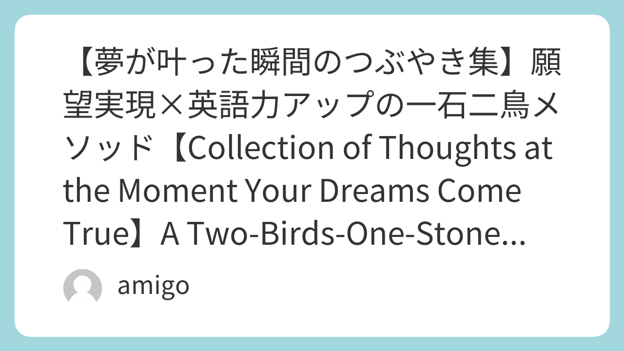 このブログは、あなたの願望実現と英語学習を同時に叶える、一石二鳥のつぶやき集です。