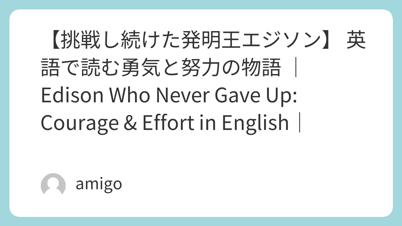 トーマス・エジソンは「発明王」として歴史に名を残した人物です。彼の生き方や名言には、どんな時代にも前向きに生きるヒントがたくさん詰まっています。この記事では、エジソンの人生のストーリーを日本語と英語の対訳付きで紹介しながら、英語の語句も一緒に学んでいきます。また、エジソンの名言を使った励ましのフレーズ作りにも挑戦します。