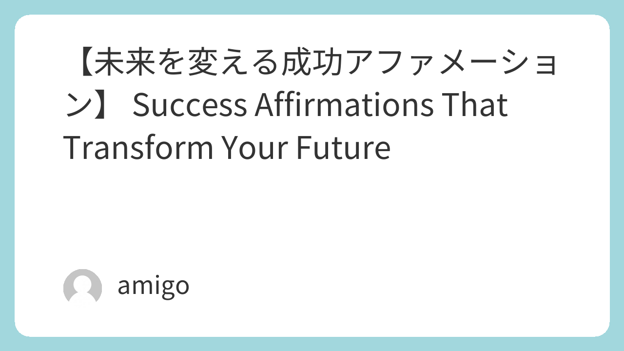 「成功と繁栄」を引き寄せるためのアファメーションは、あなたの思考と感情を前向きな方向へ導き、望む未来を創造するために非常に効果的です。毎日自分に語りかけることで、潜在意識に強いメッセージを送り、チャンスや幸運を引き寄せる力が高まります。このアファメーションを繰り返し実践し、あなた自身の成功と繁栄をしっかりと受け止めてください。