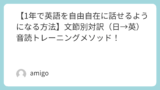 | 簡単な文を作って声に出すことで、英語のリズムが身につきます。 | Making simple sentences and speaking them out loud helps you get the rhythm of English. |