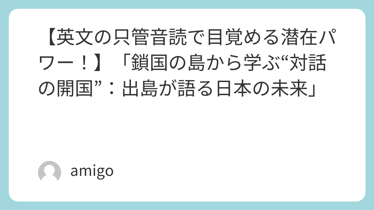 【英文の只管音読で目覚める潜在パワー!】「🌸鎖国の島から学ぶ“対話の開国”:出島が語る日本の未来」