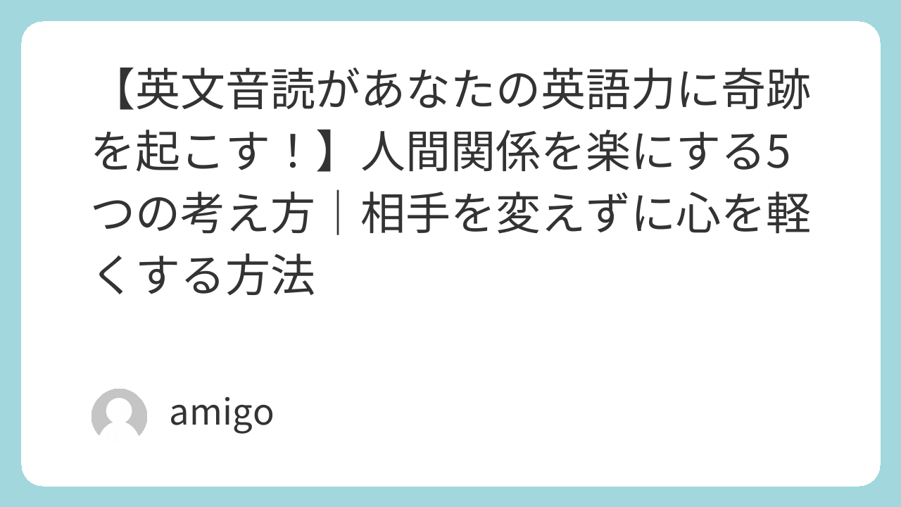 【英文音読があなたの英語力に奇跡を起こす!】人間関係を楽にする5つの考え方|相手を変えずに心を軽くする方法