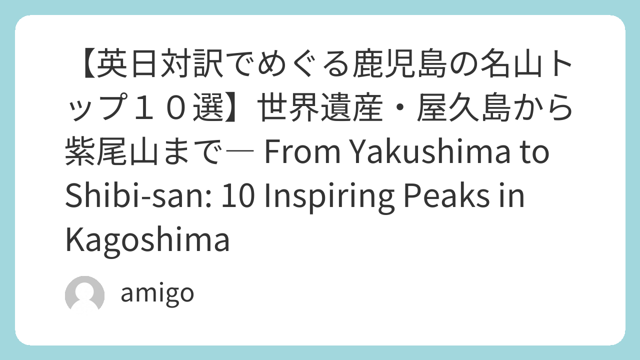 ● この記事では、そんな「もう一つの鹿児島の山々」に光を当て、高さや地形だけでなく、そこに息づく物語や、歩くことで感じられる静かな魅力を、日本語とやさしい英語で紹介していきます。