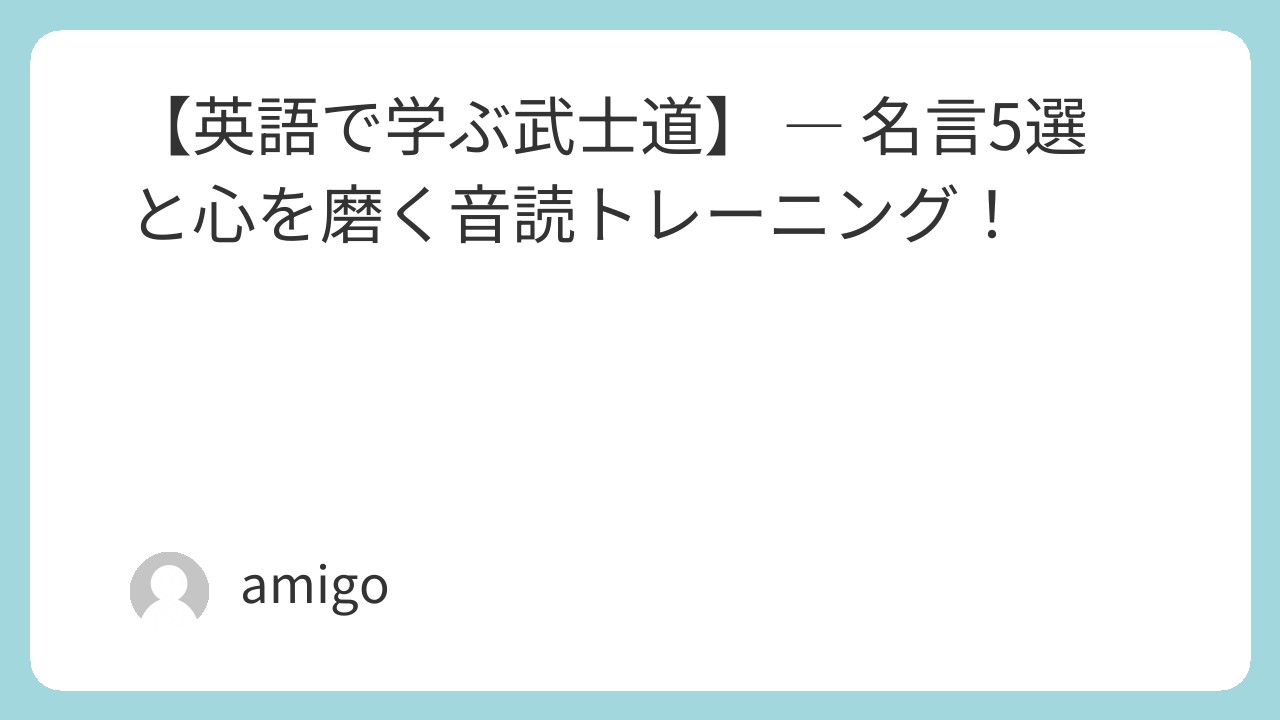 Through English reading practice, let us embody both the words and the spirit of the samurai.