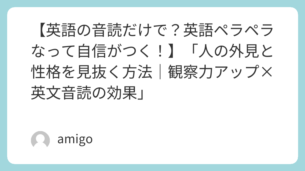 この記事を通して、人の外形的・内面的特徴を観察する力を高めるだけでなく、英文音読を取り入れることで英語学習にも役立てられることを紹介しました。日々の練習で少しずつ音読を習慣化することで、語彙力や表現力だけでなく、自分自身の理解力や洞察力も深まります。ぜひ、観察力と音読を組み合わせて、コミュニケーション力をさらに高めてみてください。💡 English