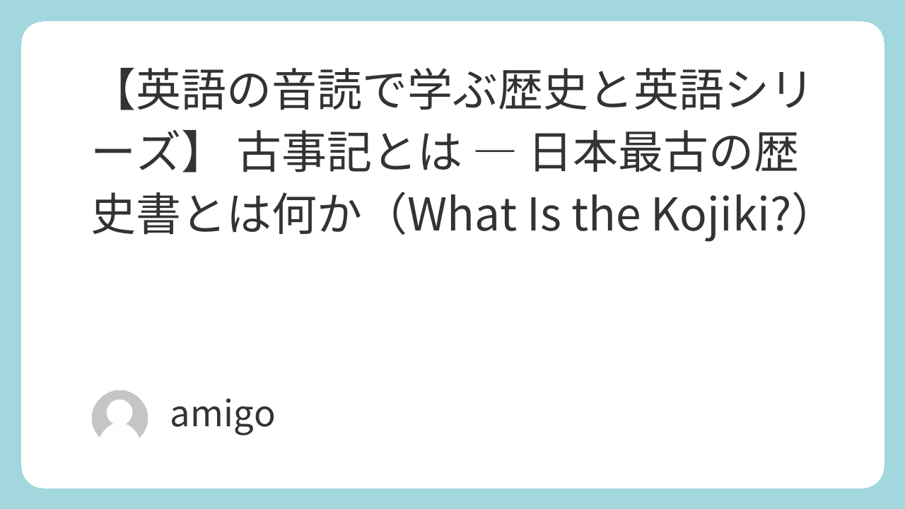 さらに、『古事記』は、日本の歴史と文化を理解する上で欠かせない書物です。神話と歴史がつながる物語を通じて、日本人の精神や自然観、家族観を学ぶことができます。この記事では、本文・英訳・語句メモ・要点を整理し、古事記の全体像をわかりやすくまとめました。