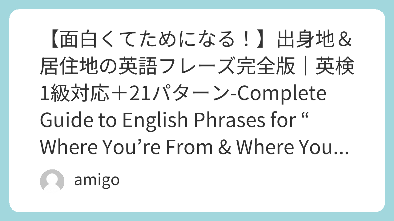 - 英検1級対応|出身地・居住地英語フレーズ完全版