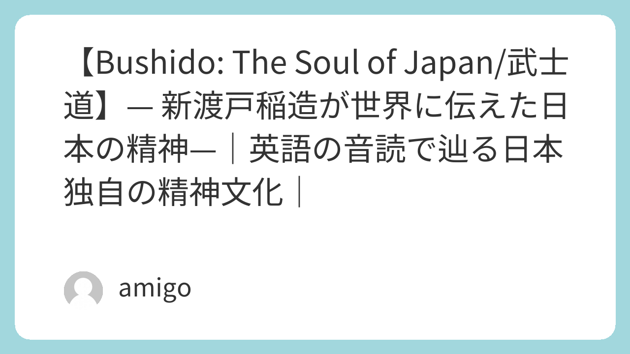 💬 彼は1899年に英語で著した『Bushido: The Soul of Japan(武士道)』によって、初めて武士道の精神を西洋に紹介しました。
