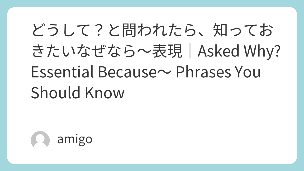 この記事では、「なぜ・どうしてWhy」と「なぜならBecause」を使った対話例文を紹介しています。理由や原因を丁寧に説明するための表現方法を学びたい方や、日常会話やビジネスシーンで使える例文を探している方に役立つ内容です。それぞれの例文には、日本語と英語の対訳をつけていますので、言語学習にも活用できます。
