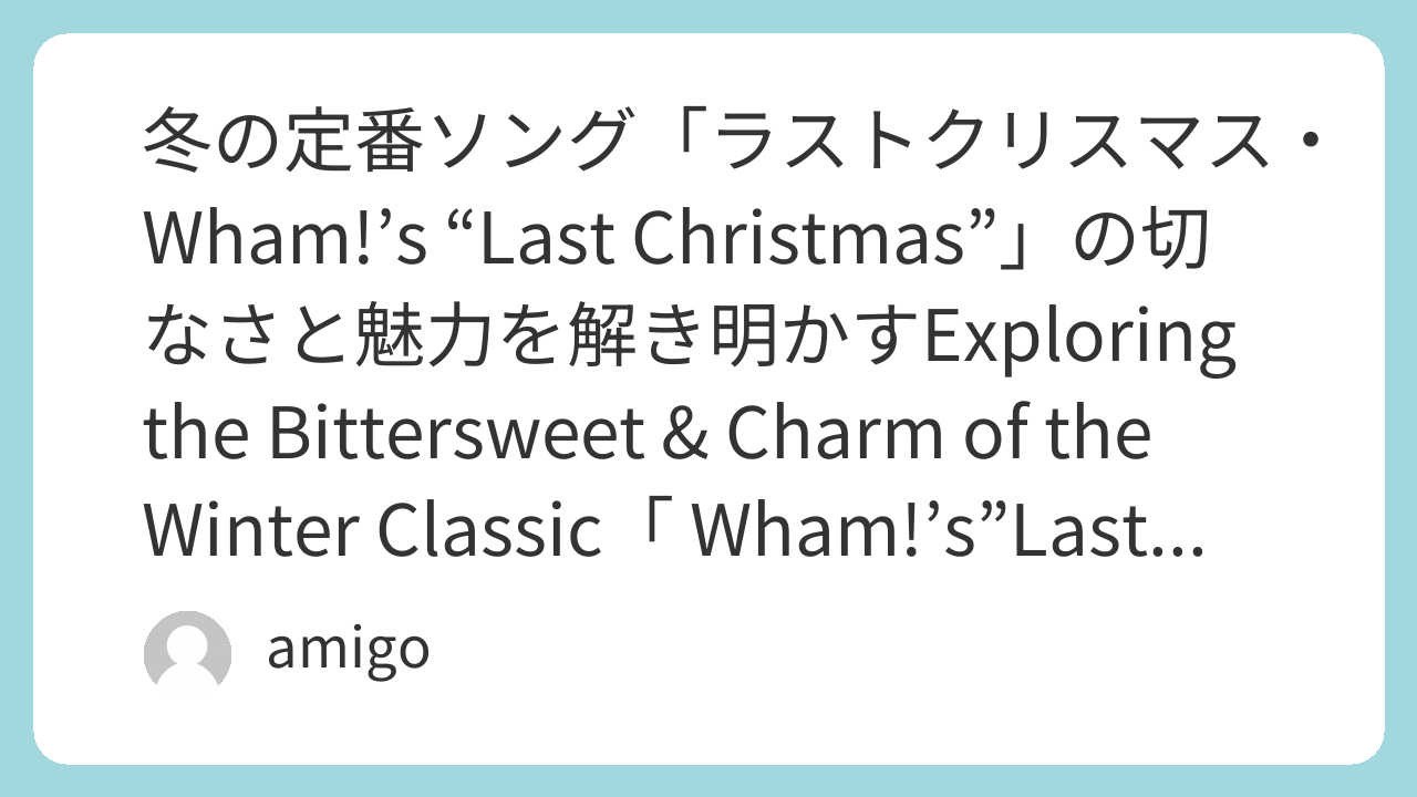クリスマスに聴きたい名曲の一つ、ワムの「ラストクリスマス」は、恋の切なさと希望を描いた冬の定番ソングです。