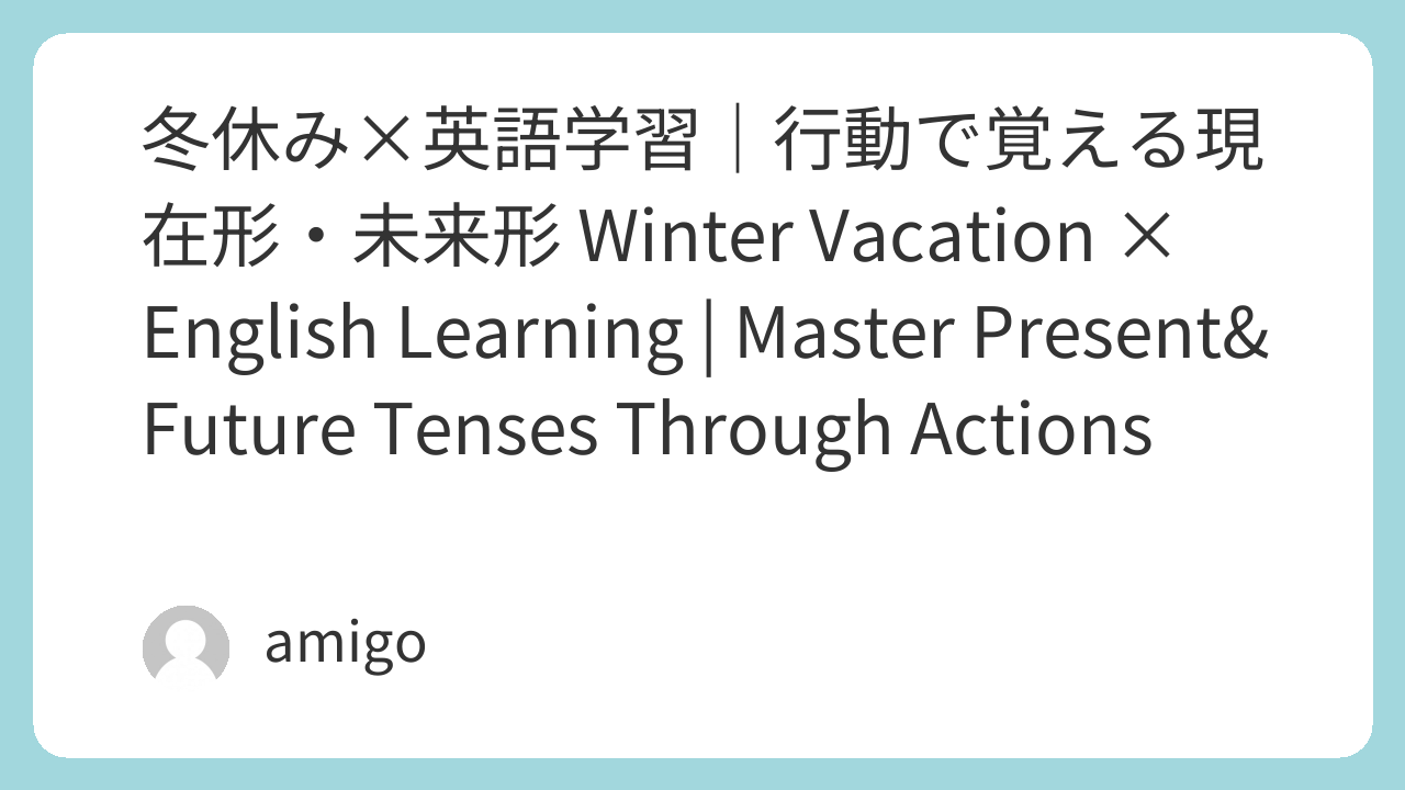 冬休み×英語学習|行動で覚える現在形・未来形                                             Winter Vacation × English Learning | Master Present & Future Tenses Through Actions