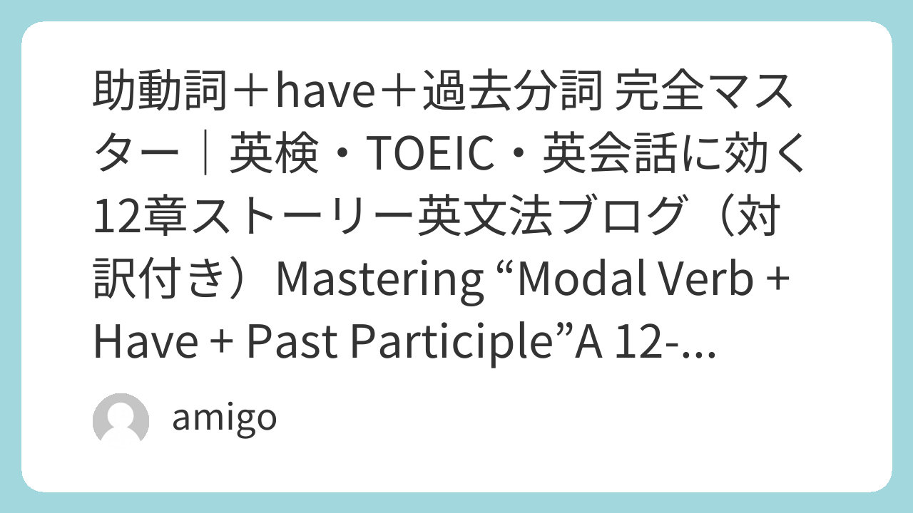 助動詞+have+過去分詞 完全マスター|英検・TOEIC・英会話に効く12章ストーリー英文法ブログ(対訳付き)Mastering “Modal Verb + Have + Past Participle”A 12-Chapter Story-Based English Grammar Blog for Eiken, TOEIC, and Conversation (With Japanese Translation)