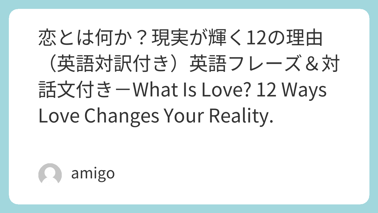 この記事が、恋を見つめ直すきっかけや、英語学習の一助となれば幸いです。