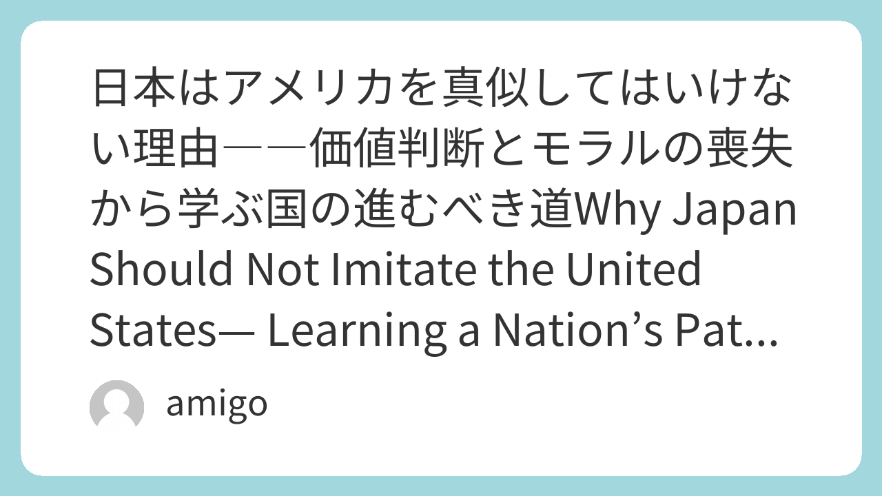 グローバル化が進む現代において、日本はしばしば「アメリカを手本にすべきだ」と語られてきました。