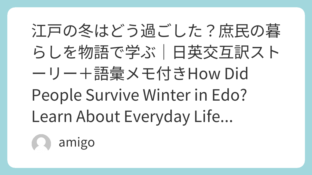 In future articles, I will share more English-learning content about Edo’s seasons and lifestyle. Please look forward to it.