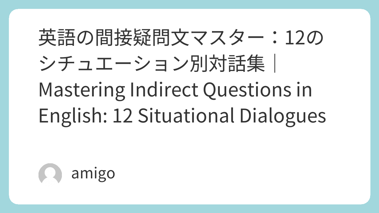 このブログでは、日常生活でよく使われる12のシチュエーション別に、間接疑問文を使った実践的な対話を紹介します。各対話には英日対訳が付いているので、学習がしやすくなっています。