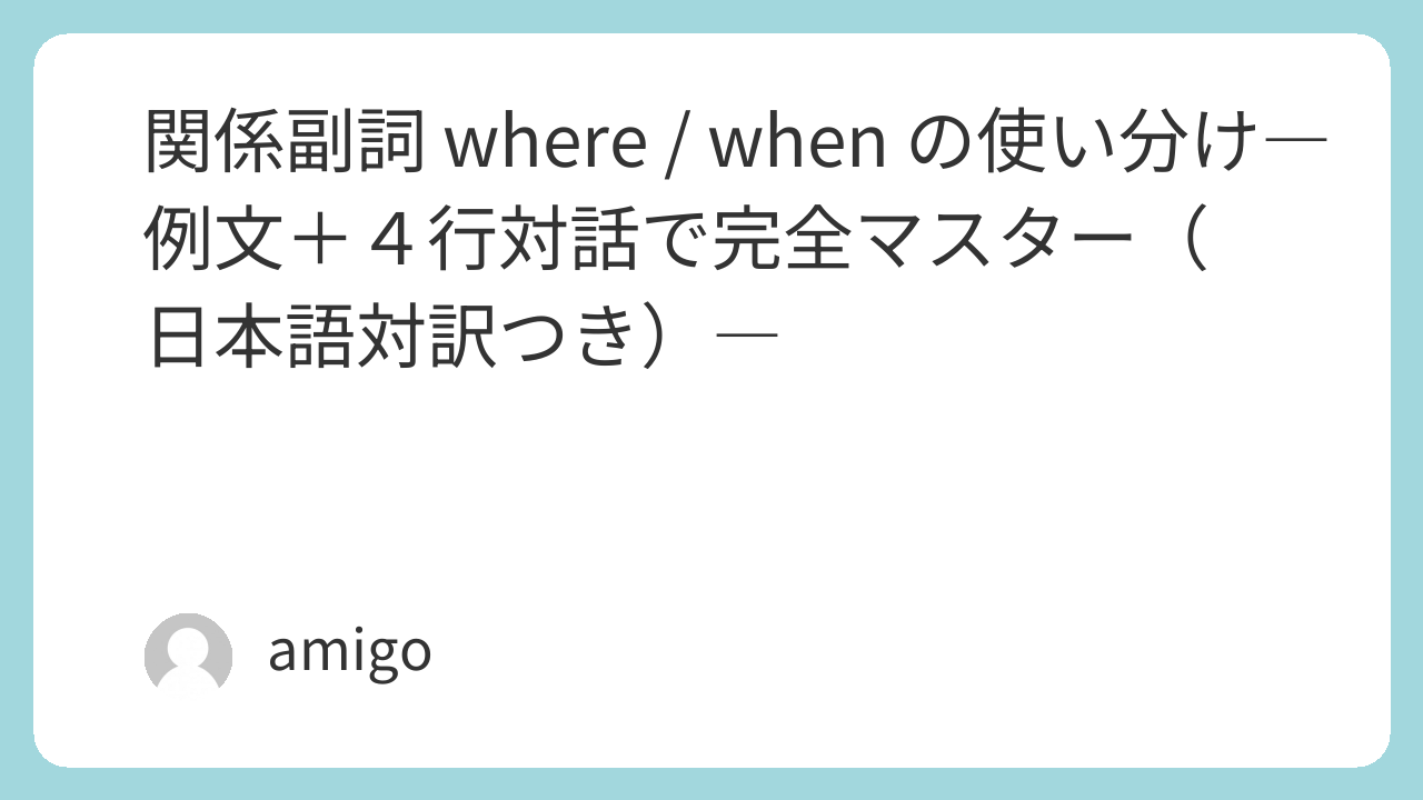 関係副詞 where と when は、暗記よりも「場面」で覚えるのがコツです。