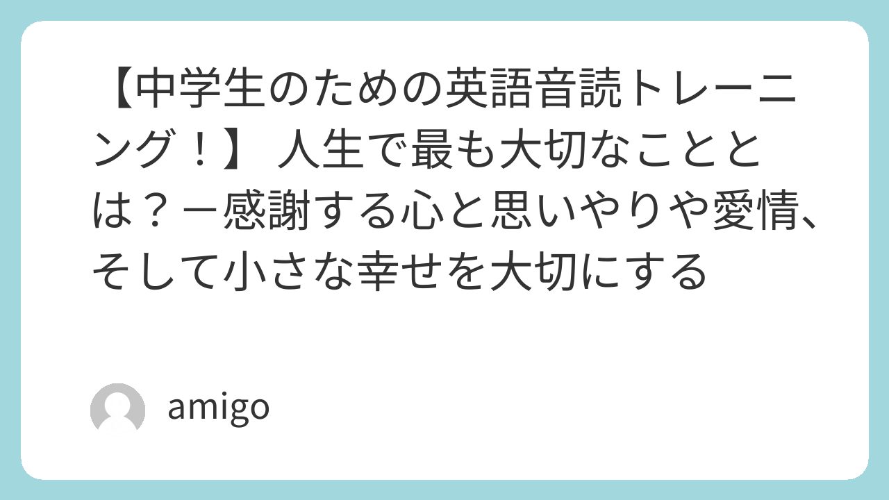 声に出して読むことで、言葉が心に響き、英語と一緒にあなた自身の価値観も育ちます。