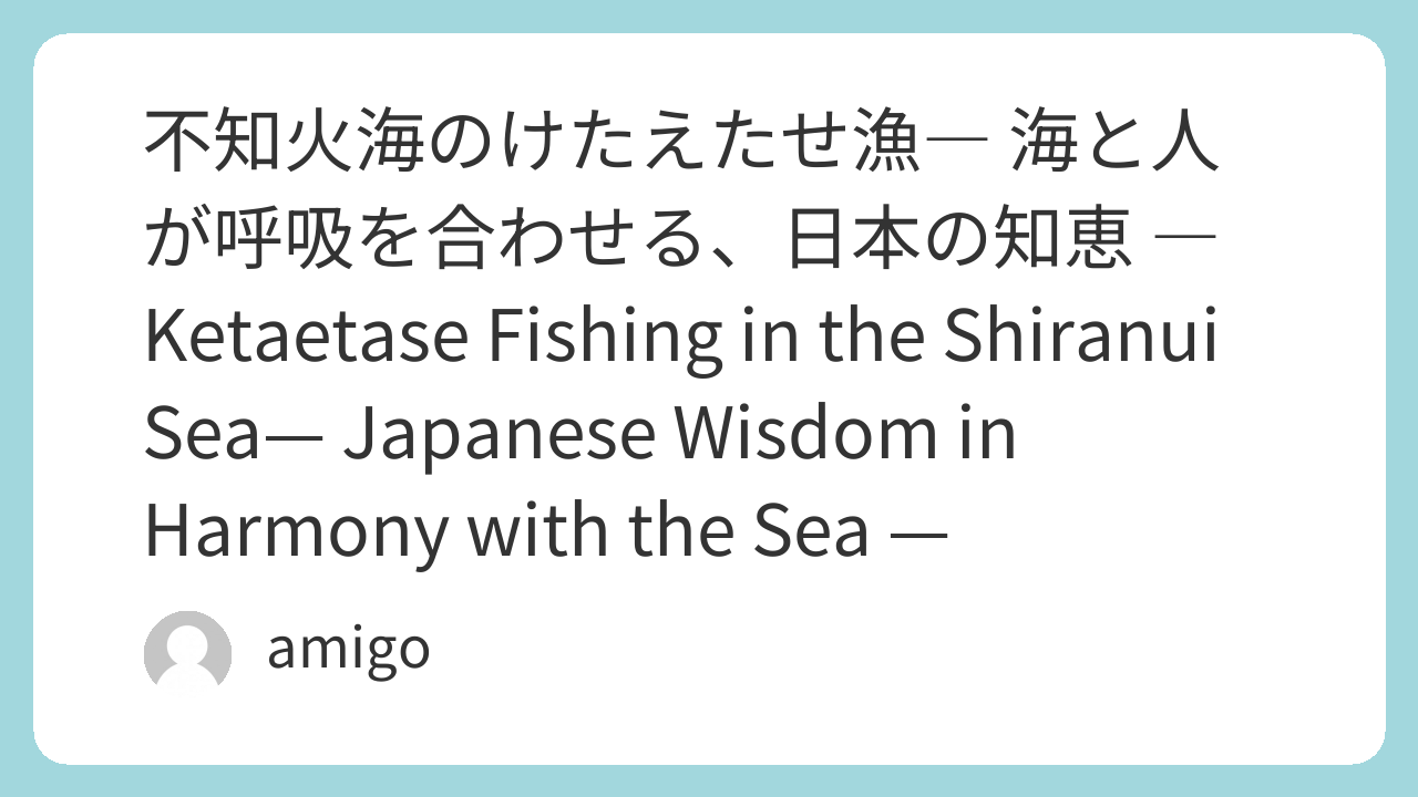 この静かな漁法は、今こそ見直されるべき文化遺産です。