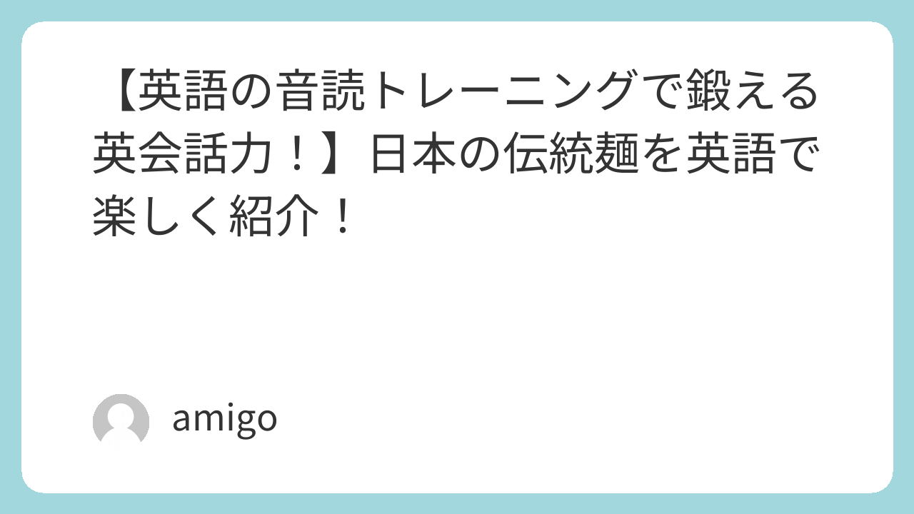【英語の音読トレーニングで鍛える英会話力!】🍜日本の伝統麺を英語で楽しく紹介!