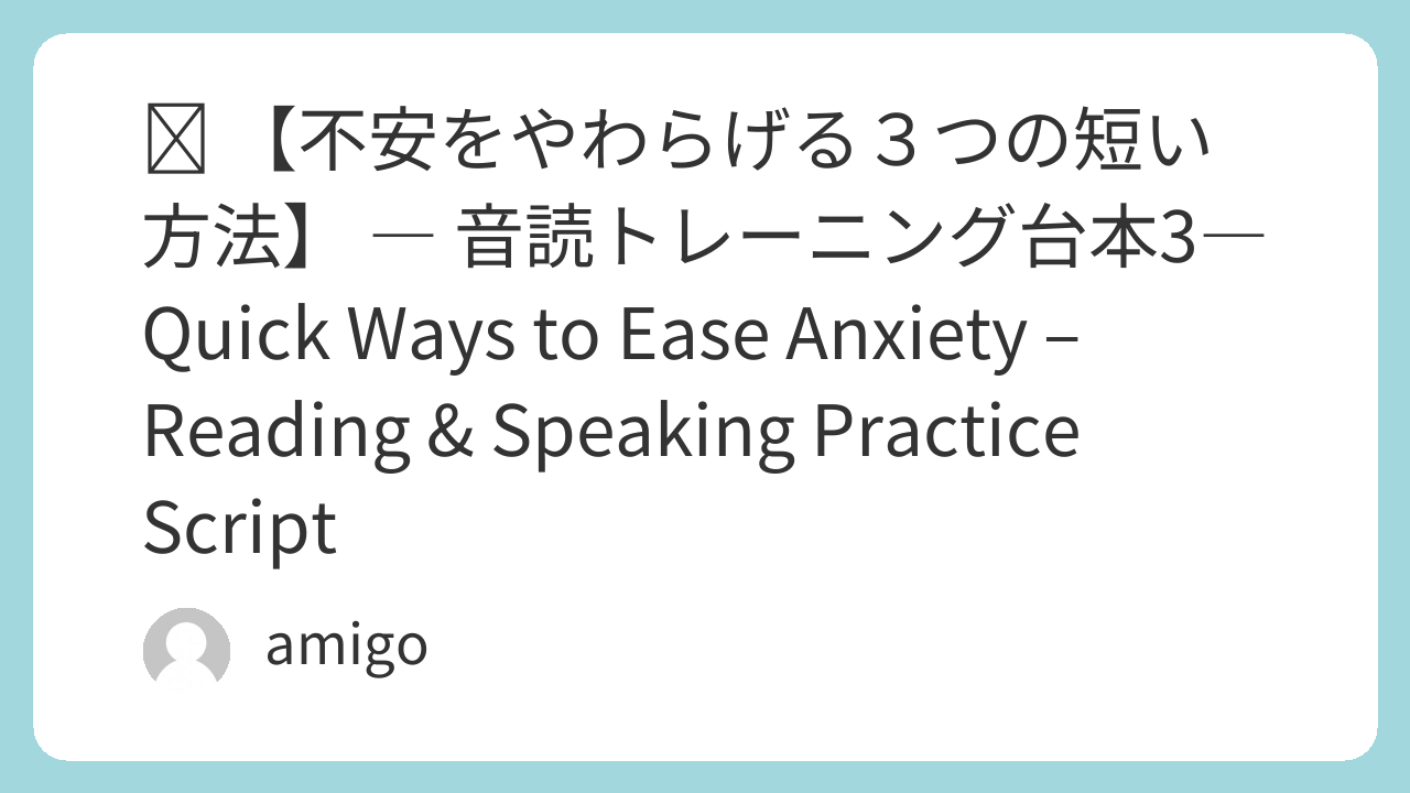 💨 ① 深呼吸して、ゆっくり3回数える ●Take a deep breath /and count slowly to three. 📝 ② 不安を書き出して、客観的に眺める ●Write down your worries /and look at them /objectively. 🚶♀️ ③ 小さな行動をひとつ起こす