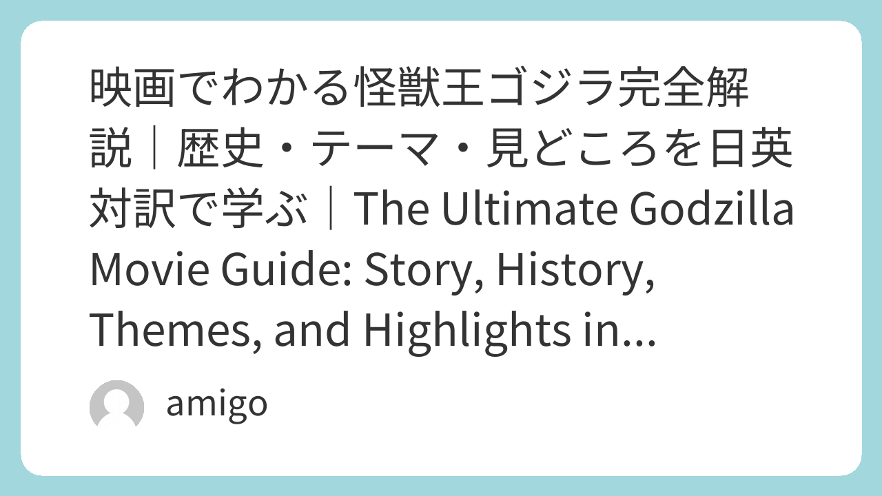 ゴジラは単なる怪獣ではなく、時代と人間を映す巨大なメッセージです。恐怖、警告、希望が重なった象徴です。映画として楽しみながら、多くのことを学べます。日英対訳で読むことで、理解と語学力が同時に伸びます。ぜひ繰り返し読み、音読して、自分の知識にしてください。
