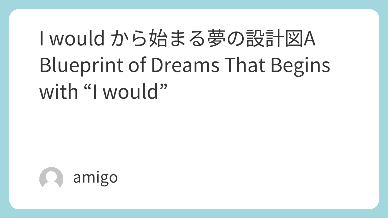 私は未来について考えるとき、必ず「I would」という言葉を使う。