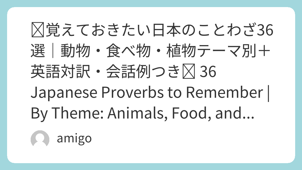 ことわざは、短い言葉の中に人生の知恵や教訓が凝縮された表現です。本記事では「動物」「食べ物」「植物」という覚えやすいテーマ別に、日本の代表的なことわざを12個ずつ整理しました。英語対訳つきなので、英語学習・音読トレーニング・ブログ教材としても活用できます。