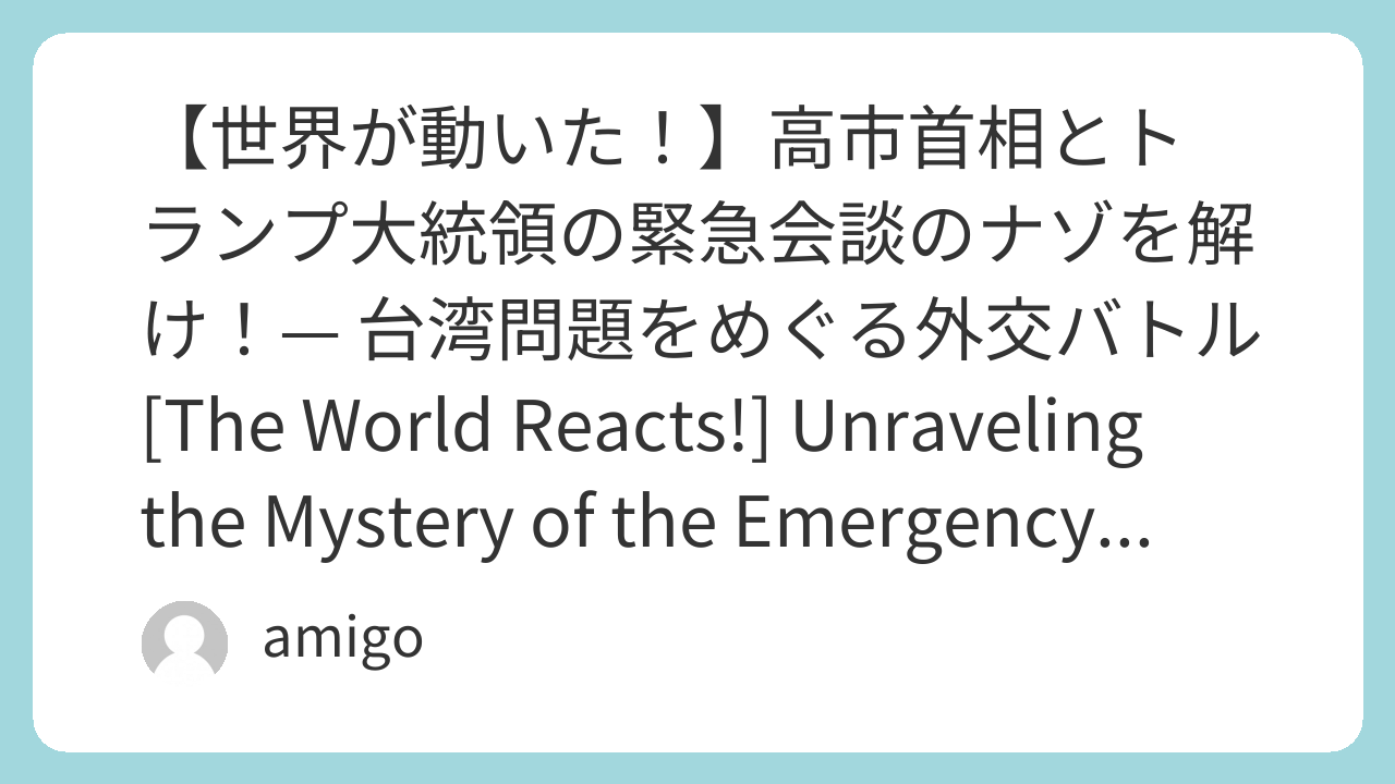 この会談の裏側には、日本・アメリカ・中国のトップたちが繰り広げる「外交バトル」が隠れているんだ。特に、「台湾問題」という、世界平和にとってとっても大切なテーマが関係しているよ。ニュースのナゾを一緒に解き明かして、世界の動きを深く理解しよう!