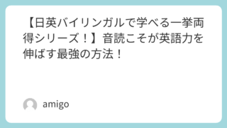 自己啓発 【日英バイリンガルで学べる一挙両得シリーズ!】音読こそが英語力を伸ばす最強の方法! 序文(Preface)みなさん、英語を学ぶときに「音読」をどれくらい取り入れていますか?実は、音読こそが英語力を伸ばす最強の方法なんです。頭で読むだけではわからなかったフレーズも、声に出して口を動かすと不思議なくらいスッと覚えられます。リズ... 2025.09.26 自己啓発英語学習