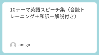 自己啓発 🌍 10テーマ英語スピーチ集(音読トレーニング+和訳+解説付き) はじめに(日本語版)英語スピーチの例文を探しているなら、この記事が最適です。「夢」「自己紹介」「文化紹介」「健康」「環境」など、10のテーマを網羅。各スピーチには和訳・語句解説・短いストーリー・対話文を付け、学習者向けに分かりやすく整理しま... 2025.09.28 自己啓発英語学習