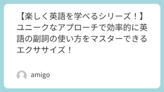 文化習慣 【楽しく英語を学べるシリーズ!】ユニークなアプローチで効率的に英語の副詞の使い方をマスターできるエクササイズ! はじめにこの英語学習教材では、日常生活や趣味、学校、仕事、旅行、感情表現、食事、スポーツ、デジタル生活、自然・環境などの 10ジャンル に分けて、副詞を中心に学べます。各ジャンルで5つの重要な副詞 を取り上げ、穴埋め形式のストーリーと副詞強... 2025.09.14 文化習慣英語学習