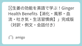 文化習慣 ✅🔹生姜の効能を英語で学ぶ!🔹Ginger Health Benefits【消化・風邪・血流・吐き気・生活習慣病】」完成版(対訳・例文・会話付き) はじめに(日英対訳版)生姜は古くから世界中で健康維持に役立つ食材として親しまれてきました。Ginger has long been cherished around the world as a food that supports hea... 2025.09.19 文化習慣英語学習