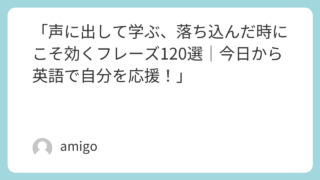 自己啓発 「声に出して学ぶ、落ち込んだ時にこそ効くフレーズ120選|今日から英語で自分を応援!」 はじめにこのフレーズ集は、毎日の生活で自分を励ますために作られました。小さな一歩でも、前向きな言葉を口に出すことで心が強くなります。日々の挑戦や感情の整理、未来への希望まで、幅広くカバーしています。各フレーズには、英語学習の効果を高めるため... 2025.09.19 自己啓発英語学習