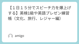 自己啓発 【1日15分でスピーチ力を爆上げする】英検1級や英語プレゼン練習帳(文化、旅行、レジャー編) 📝 文化・旅行スピーチ用に寄せて文化と旅行は、英検面接や英語スピーチで頻出のテーマです。Both culture and travel are common topics in English exams and speeches.この二つ... 2025.09.06 自己啓発英語学習