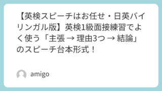 自己啓発 【英検スピーチはお任せ・日英バイリンガル版】英検1級面接練習でよく使う「主張 → 理由3つ → 結論」のスピーチ台本形式! 🔎 はじめに日本の学校では「制服(school uniform)」は当たり前ですが、メリットとデメリットがあります。賛成意見としては「平等感」「規律」「安全性」が挙げられます。一方で反対意見には「個性の制限」「費用の高さ」「快適さの欠如」が... 2025.09.07 自己啓発英語学習
