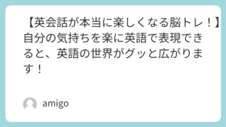 文化習慣 【英会話が本当に楽しくなる脳トレ!】自分の気持ちを楽に英語で表現できると、英語の世界がグッと広がります! 音読でウオーミングアップ!各行を短く区切り、呼吸を意識して読めるようにしました。英語→日本語の交互で読むことで、意味を理解しながら暗唱できます。リズムを意識するなら、1行ごとに軽く間を置き、2回ずつ声に出すと効果的です。Happiness ... 2025.09.08 文化習慣英語学習